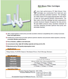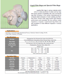 บริษัทผลิตและ จำหน่ายเกี่ยวกับใส้กรองและถุงกรอง ตามลักษณะงานที่หลากหลายตามวัตถุประสงค์การใช้งานแต่ละประเภท เช่น อาหาร (Foods), Etching , RO/Di process, Chemical, Solvents, Inks, Cosmetics, Food & Beverage.