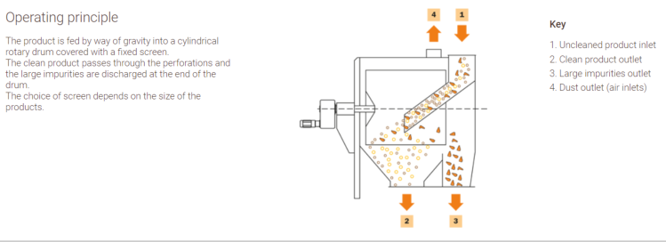 1. Drum Casing and uprights in Thick press-formed sheet metal. 2. Mobile front door secured with Bolts. 3. Extraction Spiral 4. Aspiration Inlet 5. Adjustable FIN pitch to Fine Tune tangential Time.