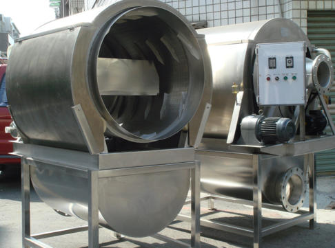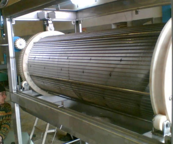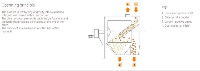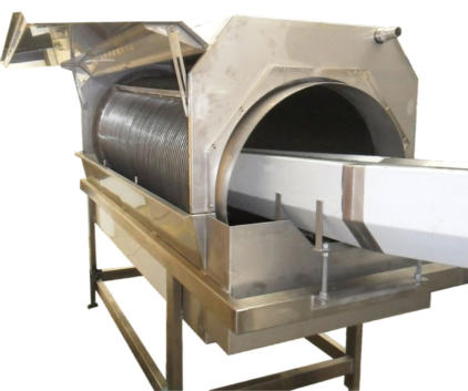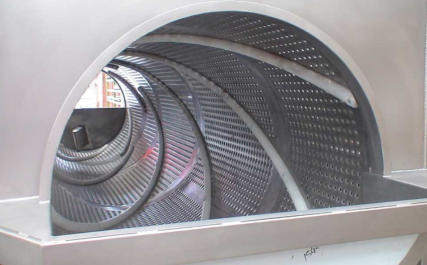 1. Drum Casing and uprights in Thick press-formed sheet metal. 2. Mobile front door secured with Bolts. 3. Extraction Spiral 4. Aspiration Inlet 5. Adjustable FIN pitch to Fine Tune tangential Time.