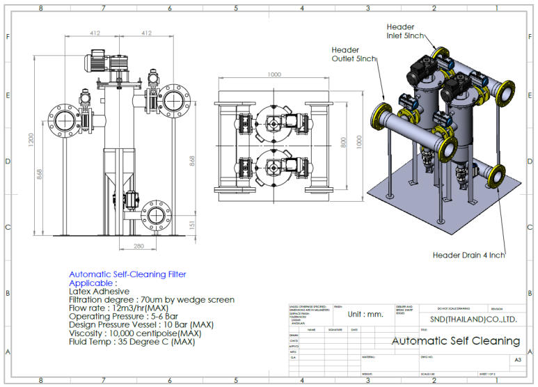 Self-Cleaning Filter เป็นเครื่องกรองไว้สำหรับแยกกากออกจากของเหลว ประสิทธิภาพสูง ทำงานได้อย่างต่อเนื่อง ออกแบบได้ตามความต้องการตามประเภทงาน 1. ทำงานได้อย่างต่อเนื่อง อุณหภูมิได้ถึง 250 Degree C. 2. สามารถควบคุมด้วย PLC (Computer Logic Control) ร่วมกับระบบไฟฟ้า หรือ Sensor ส่งผลให้ทำงานได้อย่างฉลาด 3. วัสดุผลิตจาก Stainless Steel เช่น SUS304 หรือ SUS316 เป็นต้น นอกจากนั้นยังสามารถ Coat Film layer เพื่อป้องกันการกัดกร่อนได้อีกเช่นกัน 4. ใช้กับของเหลวที่มีความหนืดได้ดี 5. ออกแบบตามมาตรฐาน ASME, U-Stamp ได้เช่นกัน ทนแรงดันได้สูง บางประเภททนแรงดันได้ 100 BarG 6. ระบบไฟฟ้า สามารถเลือกอุปกรณ์แบบ Explosion Proof ได้เช่นกัน สามารถระบุ Class การทำงานได้ 7. ความละเอียดในการกรองตั้งแต่ 0.05 mm - 3 mm (50um-3000um)